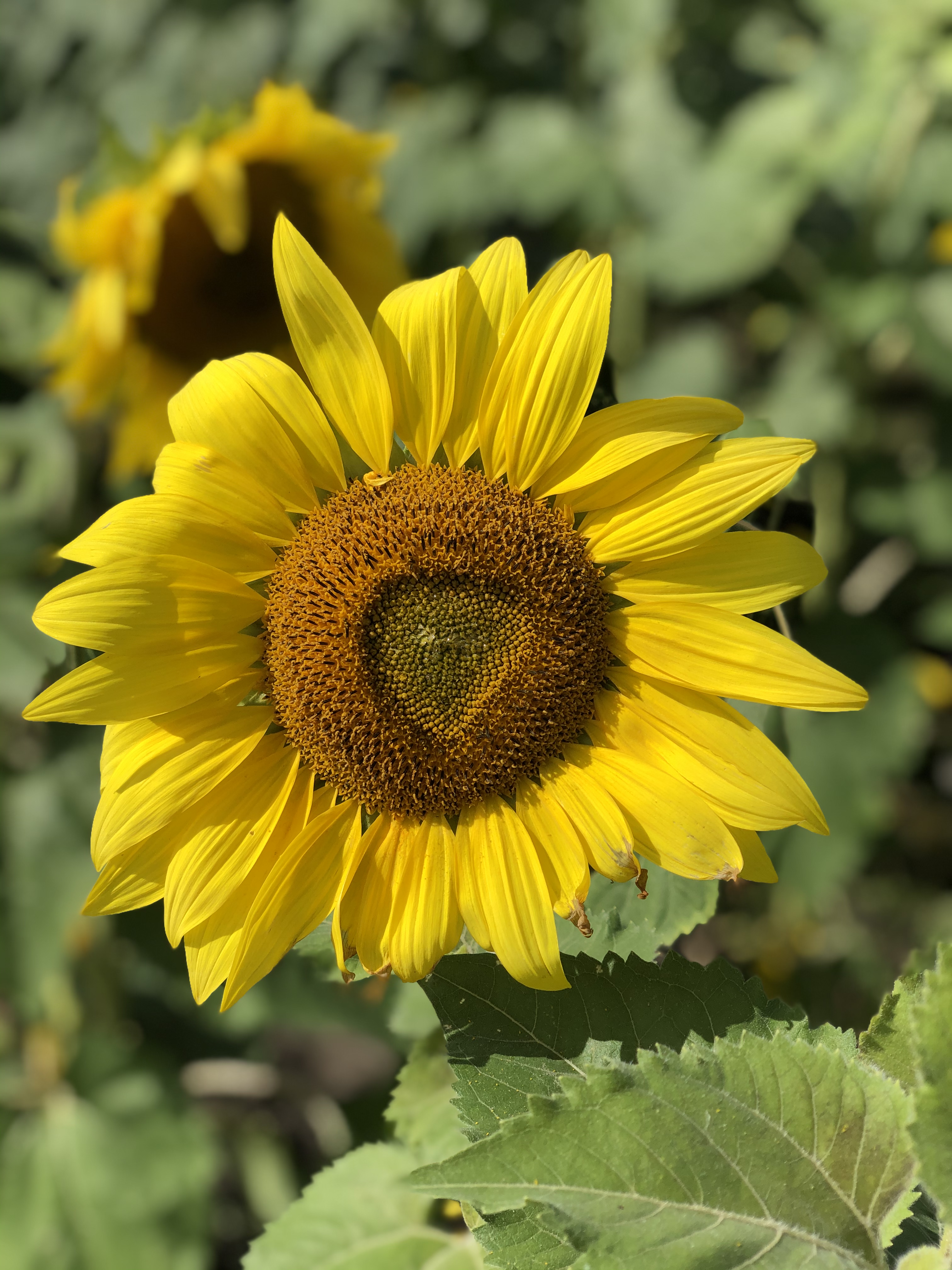 Madie’s sunflowers were planted in early July. In Minnesota, that means that these have to be vigorous and a little faster growing than the average to bloom in the short season of frost free summer. My estimate put us into early October. Fortunately, Johnny knows a thing or two about the types of sunflowers and the time each needs to hit their bloom. I was learning a lot about sunflowers in my time traveling from field to field. Did you know that sunflowers track the sunlight? Their immature heads follow the sun’s pattern from east to west, taking advantage of all the bright sunlight they can take in. When the flowers burst open into full bloom, they remain facing the east. So a whole field will be seen facing the same direction (minus a few rogue blooms that get stuck in the shadow of trees or some other twist of fate).